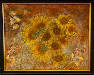 Laurie deservedly won the 2025 Spring Challenge, which was a draw from the 7 participants. We were asked to create a mixed media piece to show "The Good Things we leave behind".