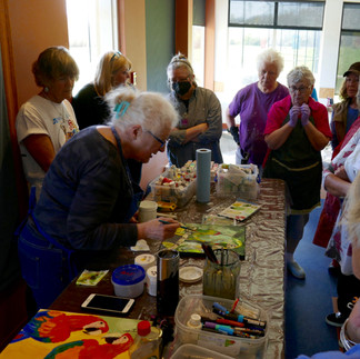 The idea was to create feathers using a palette knife to show the black canvas below.