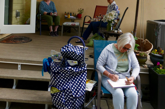 The weather held off and we had a great turnout to sketch and socialize in an amazing garden filled with colour and objets d'art. An added bonus was all the variety of snacks.